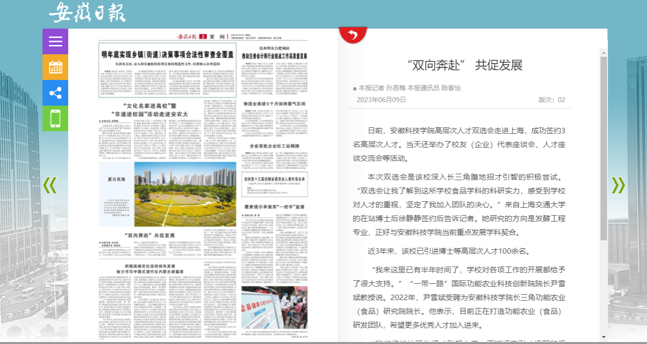 新征程的号角已经吹响,立足新阶段新定位新使命,我校将持续树牢“大人才观”,广开育才、引才、聚才、识才、用才、护才之路,全力推进学校人才工作高质量发展,为加快建设全国一流应用型大学奠定坚实基础,实现安科和人才的“双向奔赴”,努力绘就欣欣向荣的人才“新图景”。(审核:詹学文 胡文靖 何永勇 编辑:李锦)