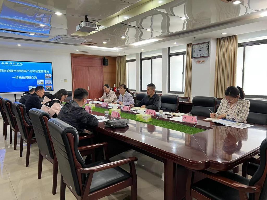 5月11日上午,滁州学院资产与实验室管理处处长王果、后勤党委正处级组织员陈从江等一行来校就历史遗留房屋产权证办理、公共房屋管理、招标采购档案管理、小额维修工程采购等事宜进行调研交流。国有资产管理处处长郑亚辉、后勤保障部主任胡明等部门工作人员参加座谈。调研交流会由郑亚辉主持。