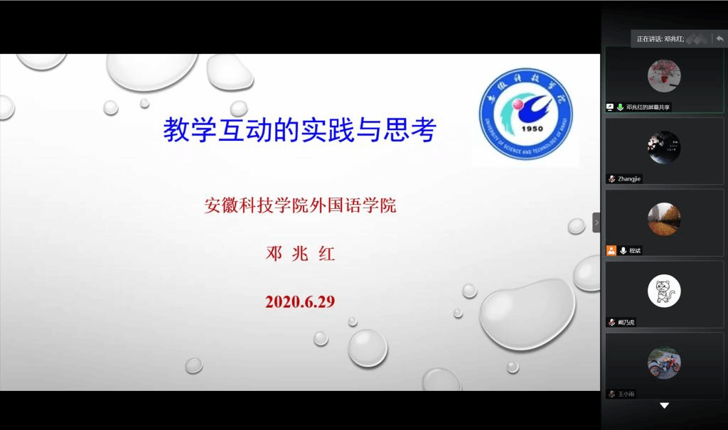 为进一步提升我校青年教师教学素养与能力,充分激发青年教师教学潜能,助推青年教师教学成长与发展,6月29日下午,学校教师能力发展中心与教学督导办公室联合邀请外国语学院教学督导组组长邓兆红教授和信息与网络工程学院教学督导组组长何恩节教授,分别以《教学互动的实践与思考》和《教学竞赛之浅见》为题,为青年教师做教学能力提升培训的第三次专题讲座,讲座通过腾讯会议平台在线举行,来自各教学院(部)的青年教师和部分教学督导员聆听讲座。讲座由教学督导办公室主任程斌主持。