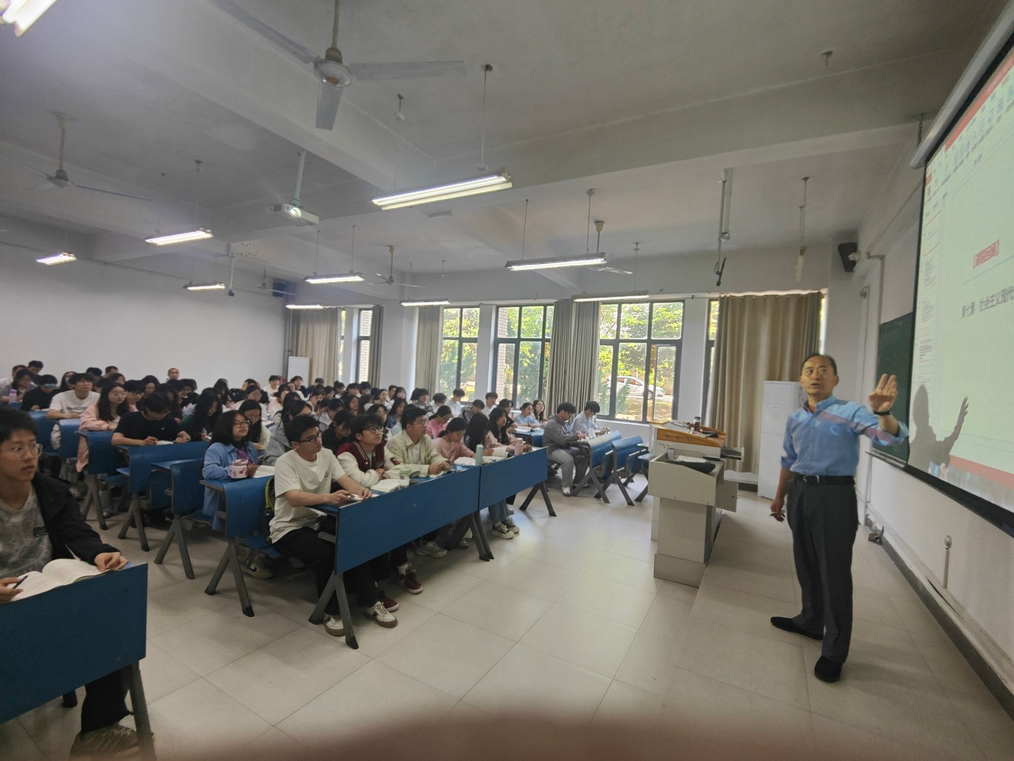 4月23日上午,开云在线“精彩一课”系列活动:名师讲堂第一讲在新知楼A103开讲,活动由督导考核办公室、教务处、马克思主义学院承办,杨仕勇副教授主讲。校党委副书记、院长李升和,党委委员、副院长赵伟峰深入课堂听课,腾讯会议进行同步直播和录播,马克思主义学院部分教师现场观摩学习。