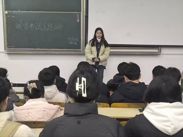 期间,各班学习委员带领同学们学习了学生手册关于学生违纪处分办法等内容,分析了诚信考试的重要意义,强调了考试纪律问题,阐述了有违诚信行为的后果,希望同学们积极备考,在考试中发挥出自己最好的水平。