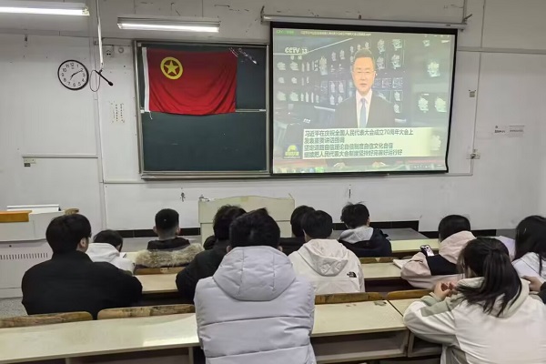 3月18日,动检243班在求A304教室召开以“党的创新理论”为主题团日活动,会议由团支书成恒芬主持。会上,团员陈灵通、马苏凡、兰霜分别分享了对习近平新时代中国特色社会主义思想及相关实践成果的学习感悟。成恒芬随后播放了与党的创新理论实践成果相关的视频,引发同学们的热烈讨论。大家一致认为,应在今后的学习和工作中不断践行党的创新理论,用实际行动为中华民族伟大复兴的中国梦注入青春力量。
