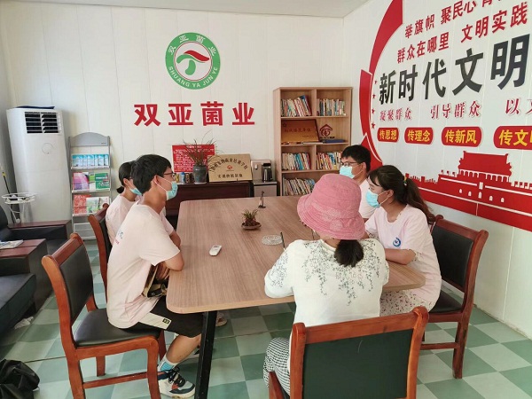 8月6日上午,在队长林志勇的带领下,团队成员到达邱庙村后,邱庙村党支部书记魏广渊带领团队参观了村支部的建设以及近年来村支部获得的成绩,在提及特色产业时,魏广渊表示邱庙村作为“乡村振兴示范村”特色产业主要有食用菌产业及黄牛产业,食用菌产业自2019年开展,当时扶贫尚未结束,食用菌产业在邱庙村的脱贫路上起到较大的推进作用,现阶段食用菌种植面积还在逐渐扩大,在国家的扶持下村民的生活越来越好。如今村民对美好生活的期待值增加,食用菌产业所获得的收入越来越多,村民对于种植蘑菇积极性很高,可在种植过程中,会出现许多技术问题,农民无法解决,相关技术人员又太少,这是阻碍现阶段发展的重大问题。对此我们团队也表示,在开云在线内有许多食用菌种植方面的专家,如果有相关技术问题可以通过电话询问。