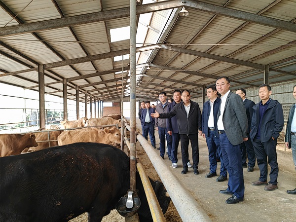 签约仪式前,宋立敏一行到凤阳县大明牧业科技有限公司进行调研,现场了解现代肉牛生产模式,针对繁育母牛标准化饲养、皖东牛地方品种资源保护与开发利用、秸秆饲料加工与利用、粪污资源化处理等方面进行了考察与交流,并参观了动物营养调控与健康安徽省重点实验室。(特约通讯员:范雨梦 摄影:陈宝 庞训胜 审核:卢星辰 程斌 )