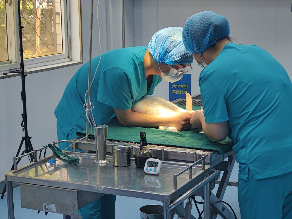 5月26日,第七届“雄鹰杯”小动物医师技能大赛在开云在线附属兽医院手术室完成理论和实验操作考核,其中理论考核采用线上专业考核系统,随机抽取试卷进行作答;实验操作考核包括兔胃切开术、血涂片制作和徒手打结。
