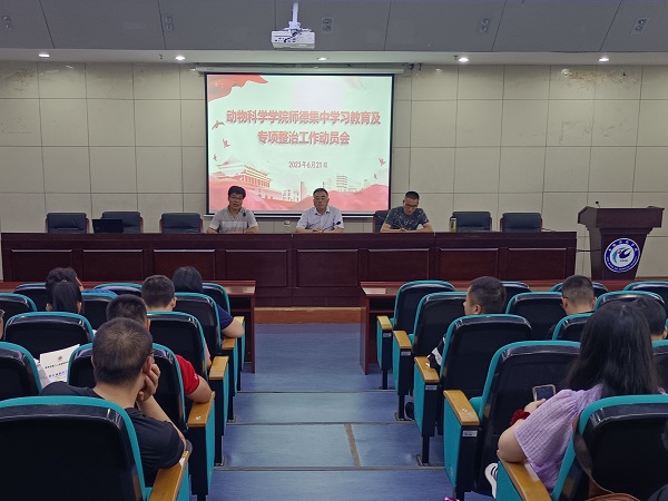 为认真贯彻落实教育部及省委教育工委、省教育厅有关师德师风文件及批示精神,扎实推进学院各项工作,6月21日下午,动物科学学院在新图书馆一楼报告厅召开全体教职工大会。会议由学院党委书记姚勇主持。