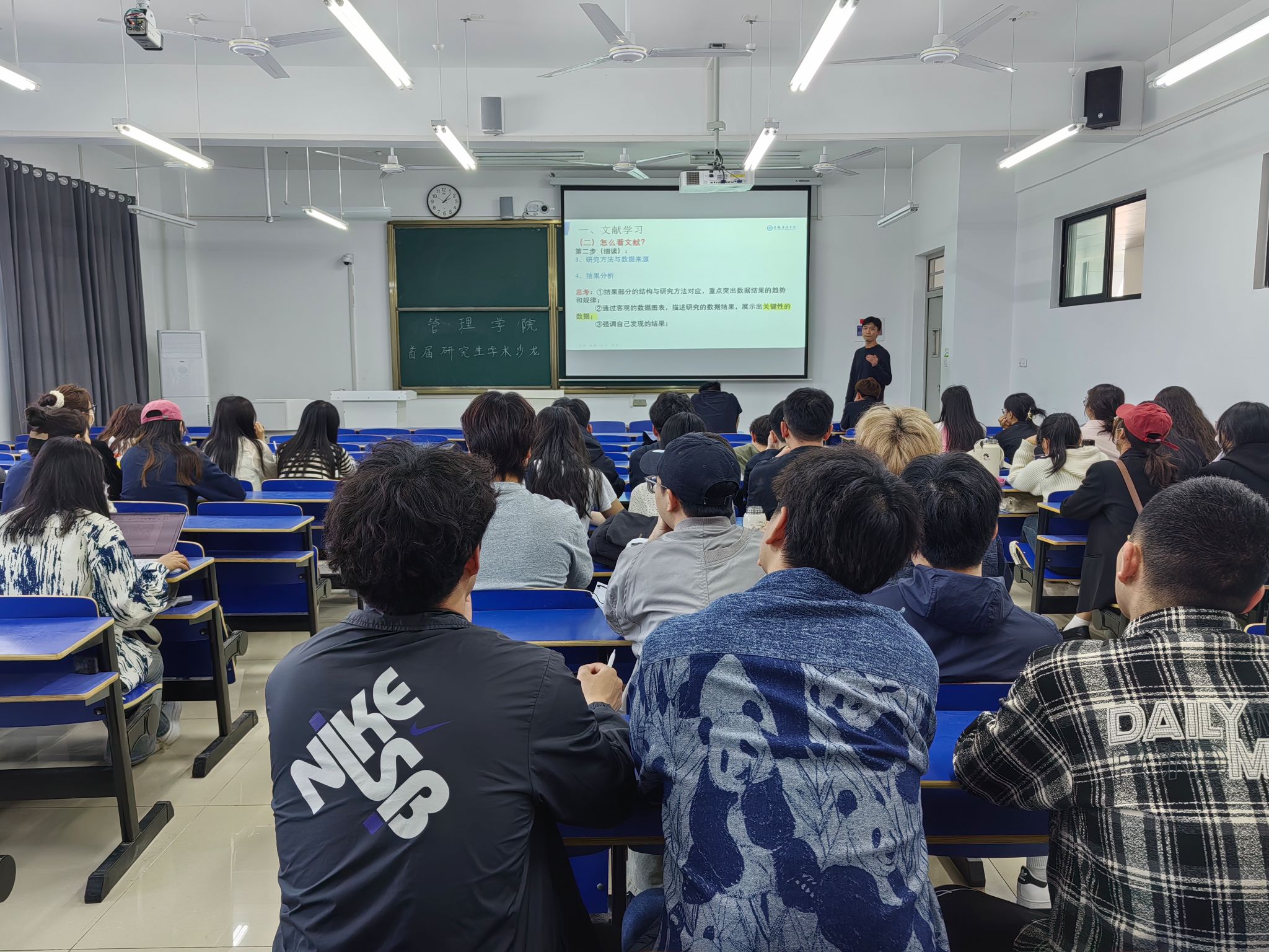 袁书冬结合自身经历,谈到了文献学习在学术研究中的重要性。他认为,文献是学术研究的基石,通过深入学习和分析文献综述,不仅能够为研究者提供理论支撑,还能够发现研究空白点和创新点。他详细介绍了如何撰写论文的学习方法和构建有效的研究模型等。在谈到论文写作步骤时,袁书冬从选题、文献综述、研究方法、数据分析及结论撰写等方面进行了详细讲解。他认为,写作过程中要注重逻辑性和条理性,确保论文内容清晰、准确、有说服力。此外,袁书冬还分享了投稿指南,对如何选择合适的期刊及投稿方式、时间、格式等事无巨细地向同学们传授经验。