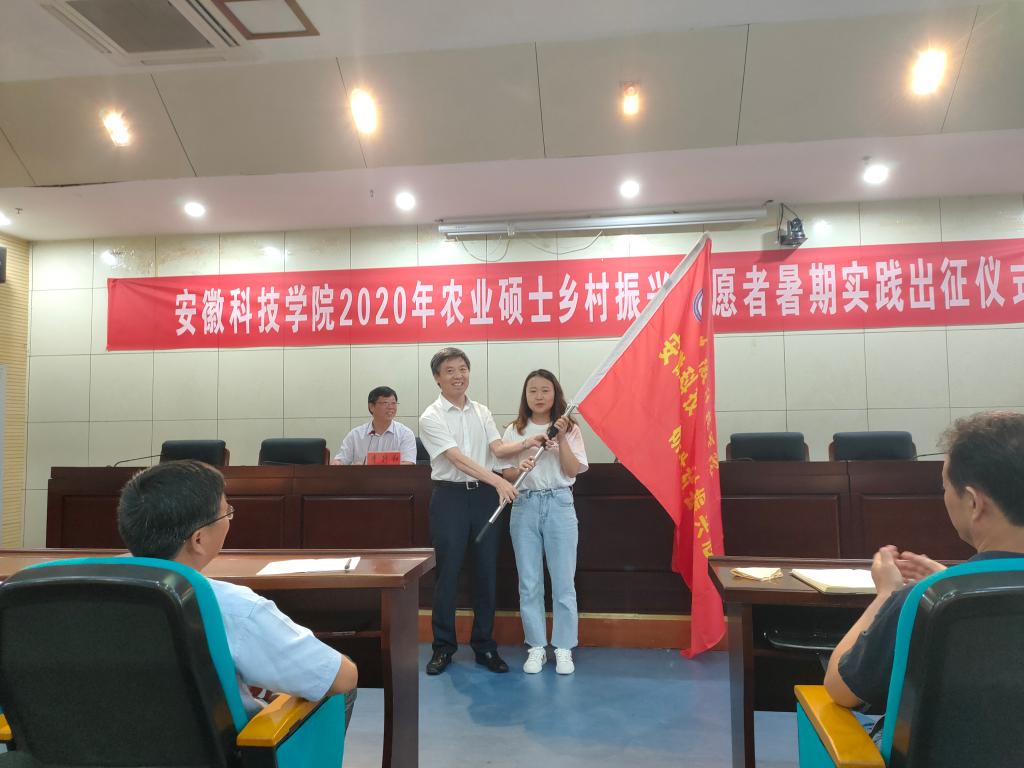 7月26日上午,我校“弘扬安科精神 助力乡村振兴”2020年农业硕士乡村振兴志愿者暑期实践出征仪式在图书馆一楼报告厅举行。校党委书记蒋德勤,党委副书记、校长李震,党委委员、副校长李升和出席仪式,各研究生培养学院负责人、带队教师和全体研究生志愿者参加出征仪式。出征仪式由李升和主持。