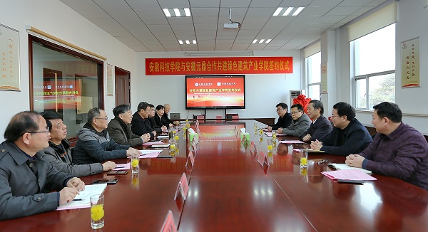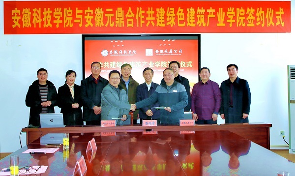 李震对我校建立“绿色建筑产业学院”表示祝贺,对安徽元鼎大力支持我校发展表示感谢。他指出,新工科背景下,产业学院已成为深化产教融合的重要抓手;双方应从人才培养、专业共建、课程共担、师资共享,到课题申报、技术研发、实习实训等方面深度谋划,推进校企合作育人新模式,不断拓宽社会服务平台。他希望双方勠力同心,促使产业学院建设发展的美好愿景落地生根,开花结果,共同把绿色建筑产业学院打造成为校企深度合作的典范。
