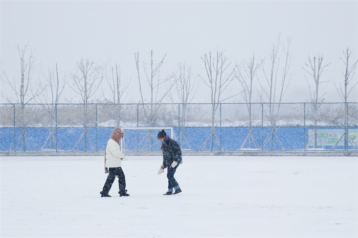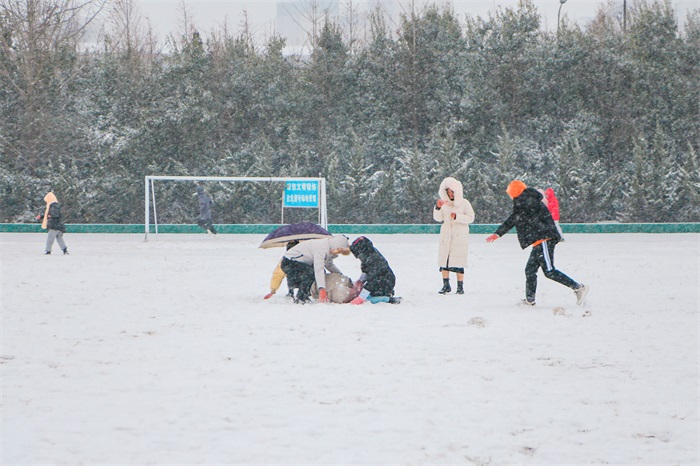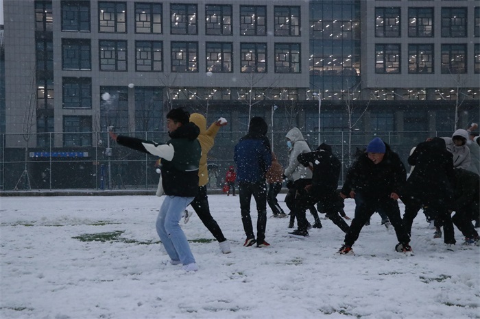 学子们三五结群地奔向操场,堆雪人、打雪仗,在白雪皑皑的草地上尽情奔跑、嬉笑打闹,小巧可爱的雪人站立在操场一角,构成了一幅动人的雪中嬉戏图。操场的笑声盖过风声,飞扬的雪花伴着在雪地里嬉戏的安科学子,定格下最美好的大学印记。