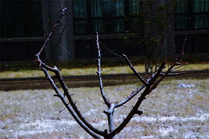 “应是天仙狂醉,乱把白云揉碎”,天上揉碎的云飘下来变成了冬天的雪花。纷纷扬扬的雪花,给安科带上了一层朦胧的滤镜,展现了她别致的韵味和风采。不期而至的雪花散落在校园每一处,每一角,制造着专属安科的冬日独家记忆。