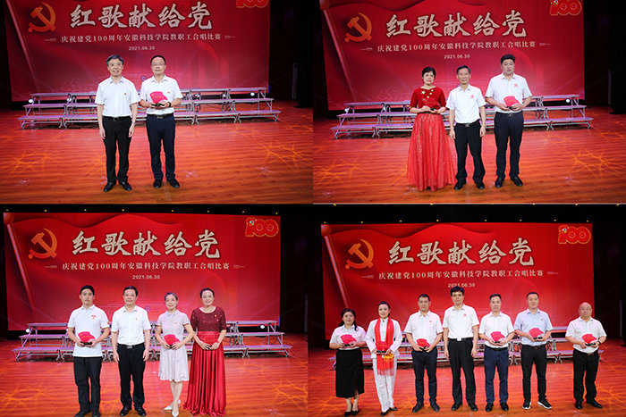 百年峥嵘岁月,百年春华秋实。6月30日下午,我校“红歌献给党”庆祝中国共产党成立100周年教职工合唱比赛在凤阳校区大学生活动中心隆重开唱。党委书记蒋德勤,党委副书记、校长李震,党委委员、副校长黄远友,党委委员、纪委书记、监察专员王强,党委委员、副校长李升和,党委委员、党委宣传(统战)部部长卫胜出席活动并参加合唱比赛。蚌埠医学院工会副主席何文,蚌埠海军士官学校军事文化与礼仪教研室副主任杨洁,蚌埠学院音乐与舞蹈学院讲师、艺术学博士孙辰,安徽财经大学会计学院团委副书记、艺术学硕士张莉,波兰肖邦音乐大学在读博士董旭应邀担任合唱比赛评委。