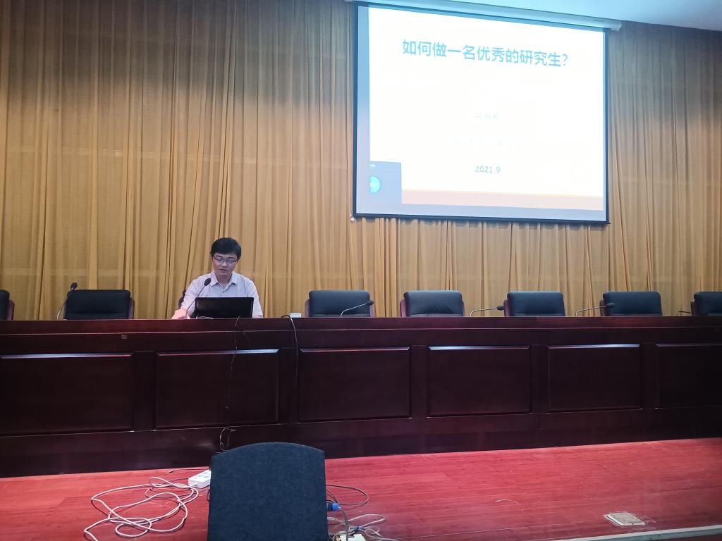 为在2021级研究生入学之初引导学生树立积极、健康的学习、科研态度,9月29日,学校邀请南京信息工程大学大气物理学院副院长、博士生导师陆春松教授作《如何做一名优秀的研究生》专题报告,报告会在凤阳校区新图书馆二楼报告厅举行,研究生处处长张春雨主持报告会。