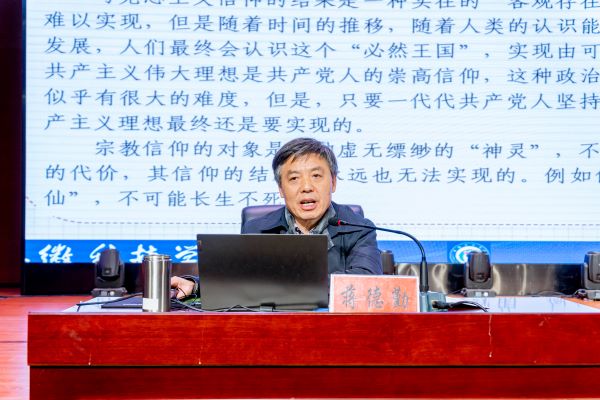 报告中,蒋德勤紧紧围绕“什么是马克思主义信仰”“为什么要坚定马克思主义信仰”“如何坚定马克思主义信仰”三个重点问题,为青年学生骨干系统阐释马克思主义信仰的本质与内涵、价值与意义,以及践行的方法与途径。报告从何为信仰切题,阐释概念、分析特征和发展过程,指出了信仰对人的价值和作用。报告严密论述了马克思主义信仰的内涵以及与其他信仰的区别,通过革命先行者们为革命英勇献身的事例让学员们感受和感悟马克思主义信仰的力量。