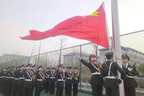 6时40分,升旗仪式正式开始。校国旗护卫队的队员们迈着整齐的步伐,护送国旗入场。伴随着义勇军进行曲的旋律,鲜艳的五星红旗徐徐升起,全体人员面向国旗行注目礼,共同祝愿祖国繁荣昌盛。“中国共产党,你是我坚定的信仰。简陋昏暗的嘉兴南湖游船上,13位平均年龄不到28岁的有志青年为了拯救国家、人民于危难时刻准备着,用生命把理想点亮……我坚定的信仰,站着前人的肩膀上我们没有理由停歇。不强大就要挨打、不求索就会落后,历史的车轮不会停顿,新的历史时期,中国共产党为了人民的利益一如既往,中国共产党——我今生矢志不渝的信仰”,财务管理2021级学生辛远洋带来的“四史”经典朗诵《信仰》,深情表达了对中国共产党的敬仰之情,展现了安科学子勇于担当、奋力拼搏的精神风貌。
