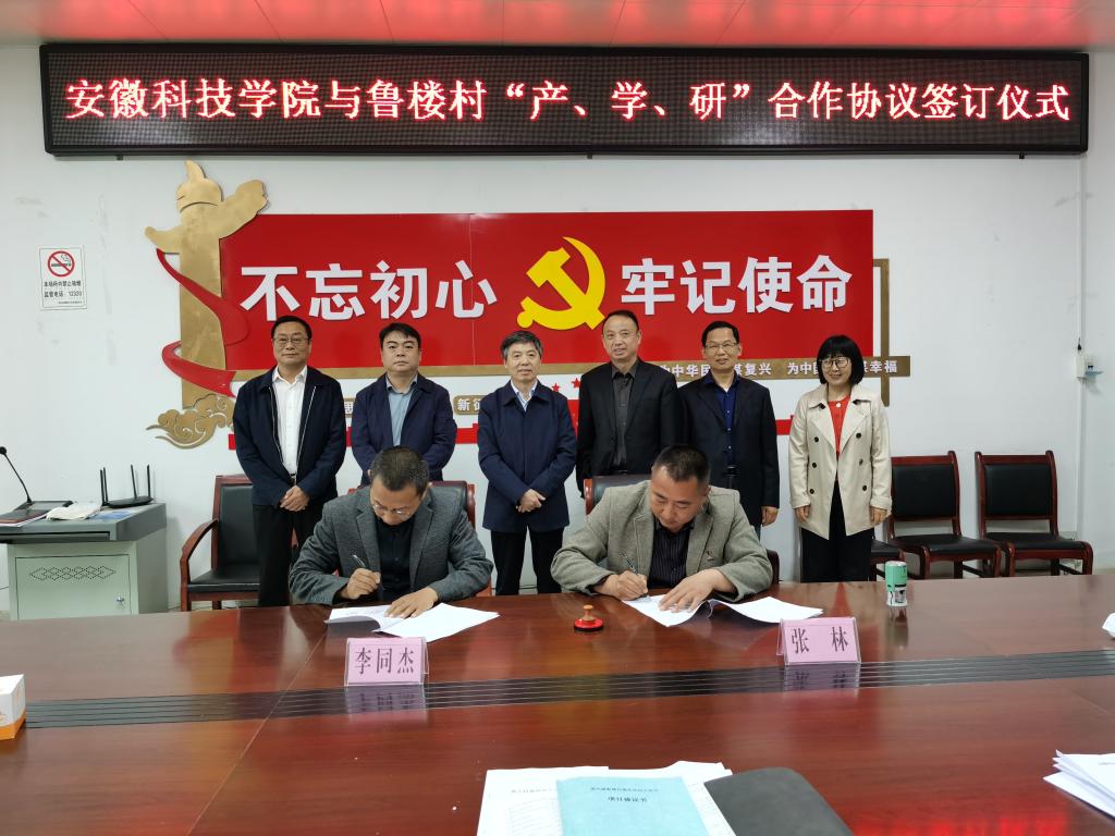 食品工程学院院长杜传来、科研处副处长李同杰代表学校分别与鲁楼村、淮北市相山区芳香花卉苗圃农民专业合作社签订了产学研、菊花深加工合作协议。特约通讯员:杨勇 审核:杜传来 姚文均 编辑:李刚)