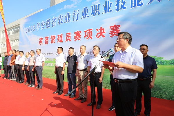 我校党委副书记、院长李震,党委委员、副院长李升和,省农业农村厅二级巡视员陈荣文,省总工会农林水利气象工会主席孙国平,省人力资源和社会保障厅技能人才管理服务中心副主任张维明,省生猪产业体系首席专家殷宗俊,滁州市农业农村局局长程金才,凤阳县人民政府副县长李文书,凤阳县农业农村局局长马军等领导出席开幕式。开幕式由省畜牧技术推广总站站长张莉主持。