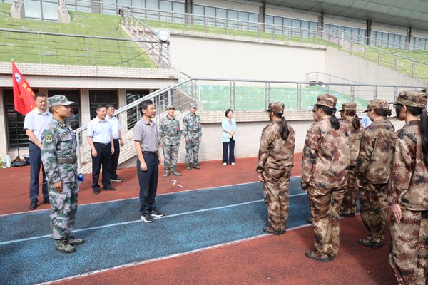 李震听取了凤阳校区军训团团长左惟明和龙湖校区军训团团长邢旺关于军训进展情况的简要汇报,对全体军训教官的辛勤劳动表示慰问和感谢,对全体参训新生青春蓬勃昂扬向上的训练状态给予高度评价。他指出,军训是新生入学后的第一课,教官的角色和作用非常关键,希望教官们能为全体新生上好第一课,帮助学生树立正确的爱国主义观、理想信念观和集体主义观,将百折不挠的意志、坚韧不拔的毅力和不畏艰难的吃苦精神传递下去,引导新生形成良好的学习和生活习惯,为大学生活打下坚实基础。