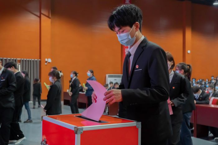 大会差额选举产生了校第十五届学生会委员会和第二届研究生会委员会,差额选举产生了校学生会和研究生会主席团成员,许杰、李永凯、李梦圆(女)、张梦茹(女)、窦强强5位同学当选为第十五届学生会主席团成员,王明蕾、林春寅、徐梦芹(女)3位同学当选研究生会主席团成员。