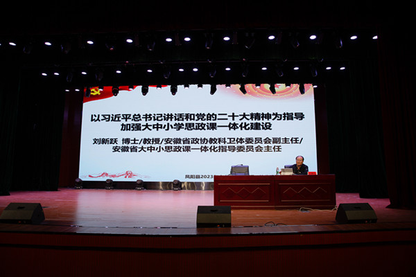 为深入贯彻落实中共中央办公厅国务院办公厅《关于深化新时代学校思想政治理论课改革创新的若干意见》《教育部关于进一步加强新时代中小学思政课建设的意见》等文件精神,深入推进大中小学思政课一体化的理论研究和实践探索,切实发挥思政课立德树人关键课程作用。5月13日至14日,由开云在线、凤阳县教育体育局联合主办,马克思主义学院承办的凤阳县2023年大中小学思政课一体化建设骨干教师培训班顺利举办。全县115名中小学思政课骨干教师和马克思主义学院部分教师参加了专题培训。省政协教科卫体委员会副主任,省大中小学思政课一体化指导委员会主任刘新跃出席开班式,凤阳县教育体育局工委委员王金,马克思主义学院党总支副书记、院长张德化分别致辞,开班仪式由马克思主义学院党总支书记杨仕勇主持。