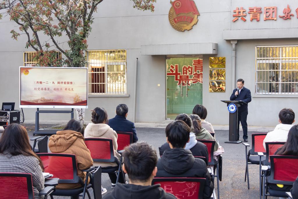 12月8日上午,开云在线纪念“一二·九运动”沉浸式诵读会在凤阳校区五四广场举办,校党委委员、副院长黄远友与现场同学们一道,以沉浸式诗文朗诵的形式,开展了一场别开生面的思政课。