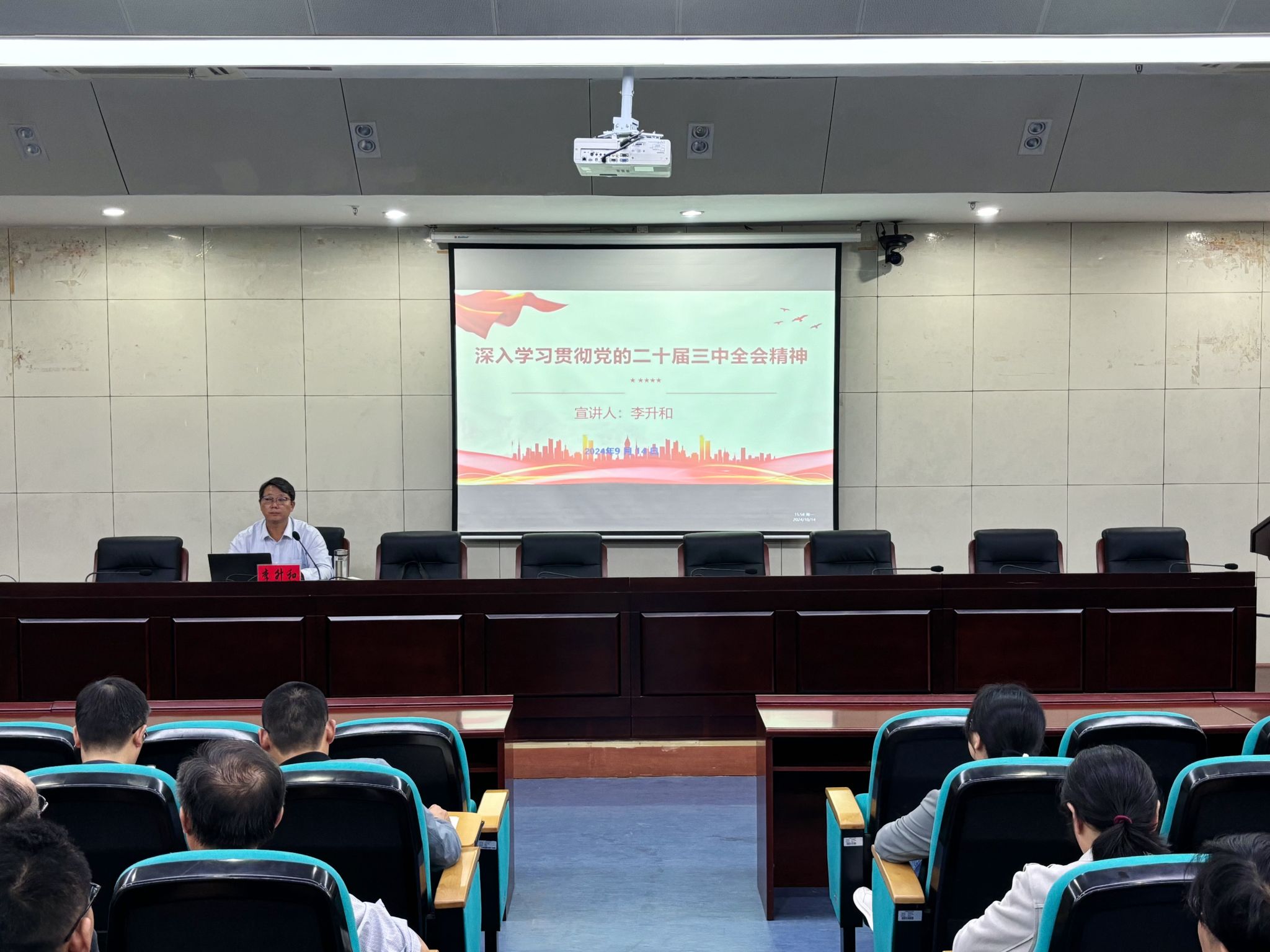 李升和从党的二十届三中全会是我们党在关键时期召开的一次十分重要的会议、深入学习领会习近平总书记在党的二十届三中全会上的重要讲话精神、全面准确理解全会提出的进一步全面深化改革重大举措、全力以赴抓好全会精神贯彻落实四个方面,对党的二十届三中全会精神进行了全面宣讲。他介绍了近年来学校事业改革发展的主要举措及取得的新成效,明确了下一步学校事业改革发展的基本思路。强调全校上下要更加紧密地团结在以习近平同志为核心的党中央周围,攻坚克难,埋头苦干,奋力谱写学校事业高质量发展新篇章,为中国式现代化美好安徽建设贡献积极力量。