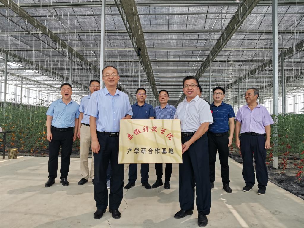 8月18日上午,何世潮一行在阜阳市颍东区二级巡视员王雷和颍东区委常委、副区长程传雷等的陪同先后考察了安徽瓦大现代农业科技有限公司、阜阳市立华畜禽有限公司和颍东区插花镇杨桥居委会,并进行了座谈。在座谈交流会上,瓦大集团总经理刘志才和立华公司总经理牛洪波分别介绍了各自的公司现状、企业文化、发展规划、人才需求和项目合作需求等方面情况,省财政厅下派干部、颍东区插花镇杨桥居党总支第一书记徐进超介绍了颍东区插花镇杨桥居委会基本情况、开展的工作、存在的问题和未来的展望。何世潮和崔广荣介绍了学校及学院师资队伍、人才培养和社会服务等情况,他们表示,学校始终坚持走政产学研融合之路,努力将科研成果转化到实际生产,为企业科研成果运用提供强有力的支撑。瓦大集团与开云在线合作的“产学研合作基地”和“校外实习实训基地”揭牌仪式在瓦大番茄谷隆重举行。崔广荣与颍东区插花镇党委副书记、镇长张勇座谈会后签订了政产学研合作协议。