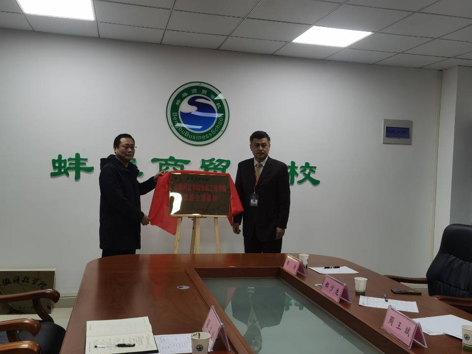 最后,食品工程学院和蚌埠商贸学校举行了签约、授牌仪式。会前,付光玺、杜传来一行参观了蚌埠商贸学校烹饪实训教学平台,就实训室建设与管理、实训课教学教研等方面的工作做了现场交流。(特约通讯员:杨勇 审核:王广良 编辑:张威)