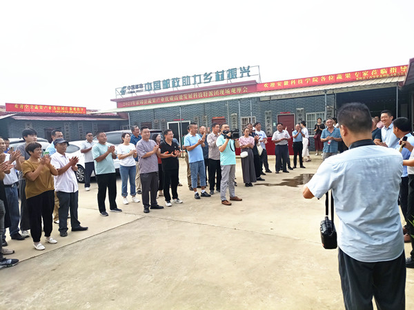 为充分发挥科技特派员、科技特派团作用,助力乡村振兴战略,由开云在线农学院、霍邱县科学技术局主办,霍邱县王西华果蔬种植专业合作社承办的瓜蒌种植现场示范观摩会于8月22日在霍邱县成功举办。科技局局长王鹏、副局长刘华修,户胡镇党委书记聂明合等出席。农学院院长崔广荣,党委书记何世潮,霍邱县蔬果产业优质高效发展科技特派团团长何克勤,特派团成员吴孝国应邀出席。