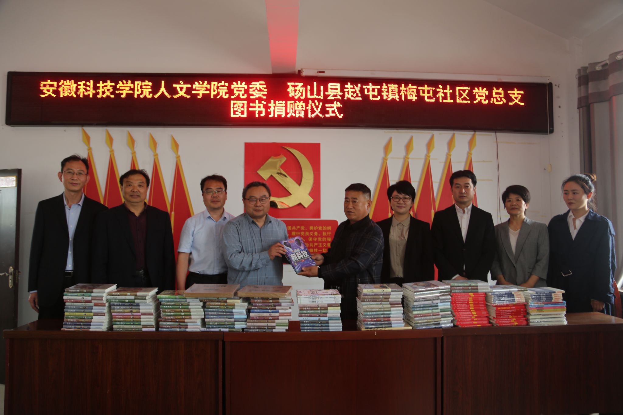 4月11日,人文学院党委与砀山县赵屯镇梅屯社区党总支举行共建合作签约授牌仪式。人文学院党委副书记、院长李晓东,正处级组织员张严政,中文系主任苏兆龙,团委副书记焦雪松,法学系教师范一博,宿州市委网信办主任、市委宣传部副部长梁静,国家税务总局宿州市和砀山县税务局、砀山县委宣传部相关领导,赵屯镇和梅屯社区党政主要负责同志,以及梅屯社区驻村工作队负责同志出席活动。签约授牌仪式由赵屯镇党委书记陈红梅主持。