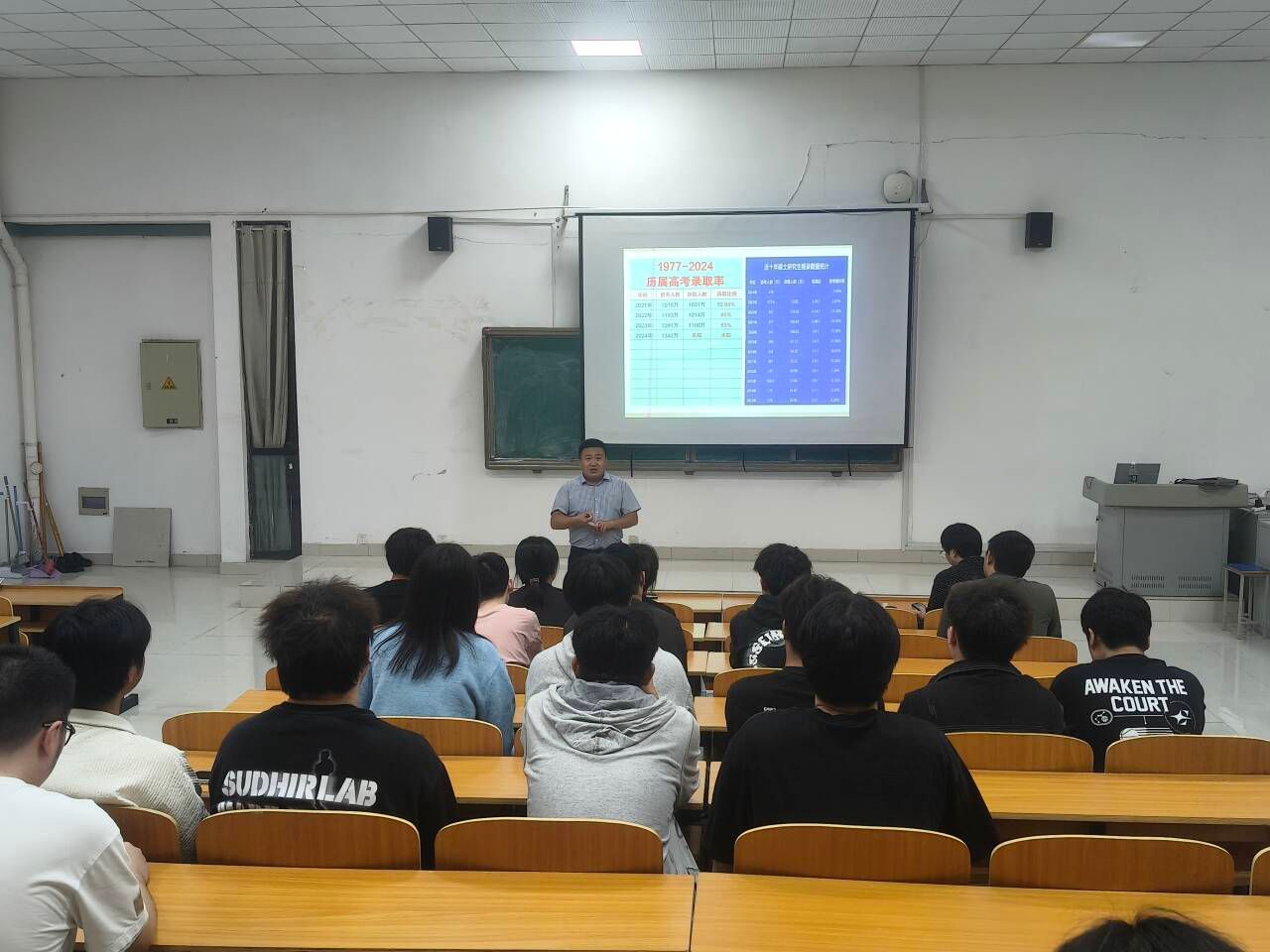会上,谢宜勤分析了学院近三年的考研学生报考院校、专业及录取等情况,建议大家理性报考,结合自身实力与相关资源选择目标,避免盲目扎堆热门院校;同时鼓励同学们要坚定信心、坚持到底,学院是考研学子的坚强后盾。
