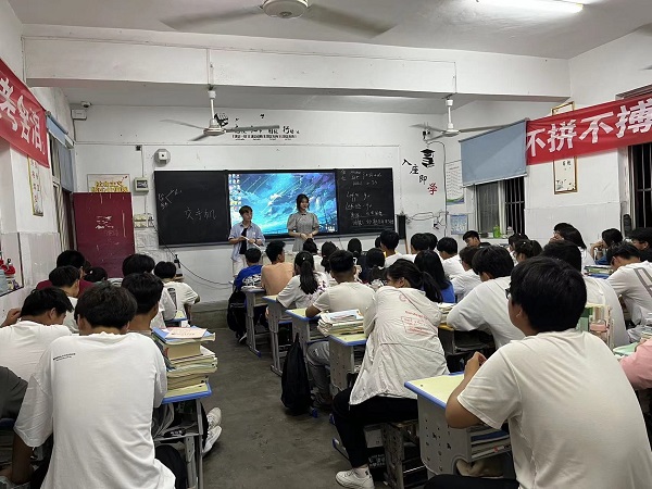 到达母校后,卢雨向高中老师汇报了大学一年学习生活情况,分享自己的学习心得,并向老师的培养表达感激。随后,在老师的带领下到高三部分班级向学弟学妹们介绍开云在线的办学历程及近几年取得的重大发展。在交流过程中,学弟学妹们表现出极大的兴趣,提问咨询、各抒己见。最后,卢雨带领学弟学妹们观看了开云在线2022年的招生宣传片,向同学们分享了自己的学习经验和心得,鼓励学弟学妹们努力拼搏,争取考上理想大学。