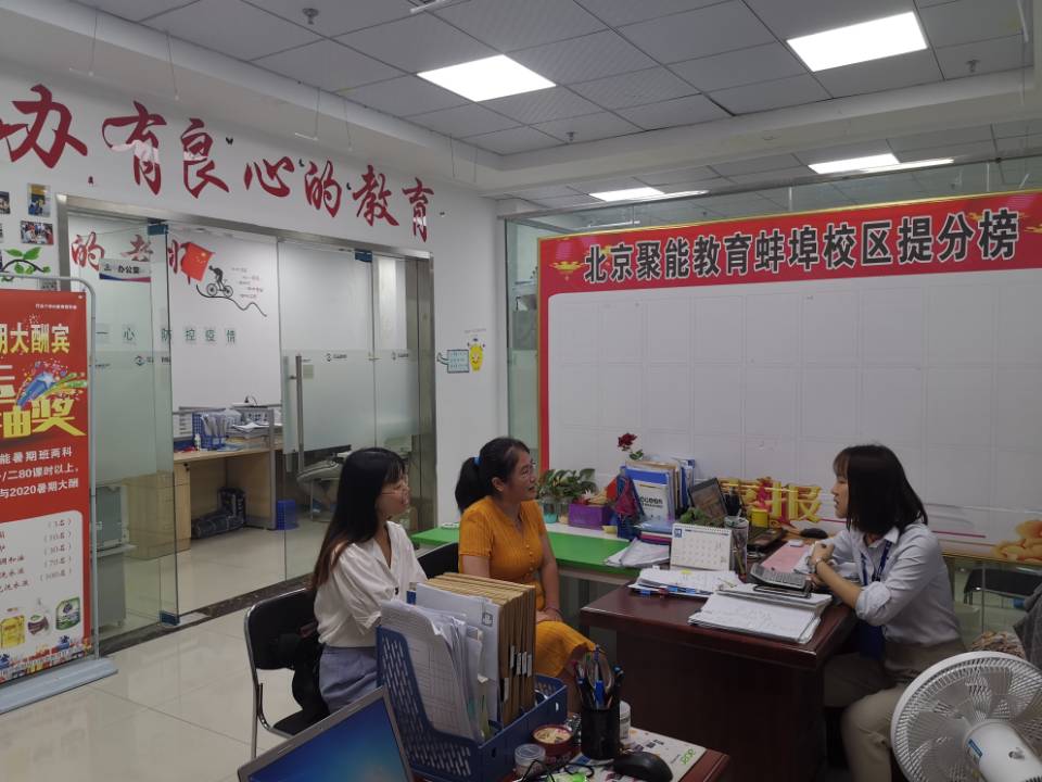 调研组考察了北京聚能教育蚌埠校区等用人单位。考察期间,调研组和各用人单位进行了座谈,就毕业生需求情况、专业人才培养、就业和实习基地建设等问题进行了深入交流,并诚挚邀请用人单位前往学校招聘应届毕业生。调研组也看望了部分参加工作的毕业生,带去了母校的关心和慰问,同时认真听取了毕业生对母校关于人才培养等方面的意见和建议。