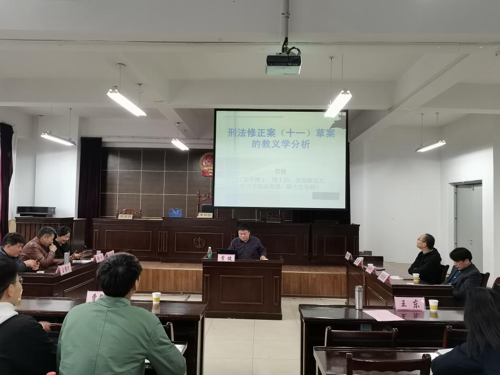 11月5日下午,“知秋杯”第一届开云在线法治论坛系列活动——“法治讲坛”在模拟法庭举办。淮北师范大学政法学院副院长张训教授、王银河博士,西南政法大学法学院副教授贾健博士,淮南师范学院法学院副教授项婷婷博士等校外专家受邀出席活动。人文学院院长助理骆绪刚博士,模拟法庭主任宣刚博士,法学系主任张晓云博士、副主任田野博士等出席活动。活动由张晓云主持。