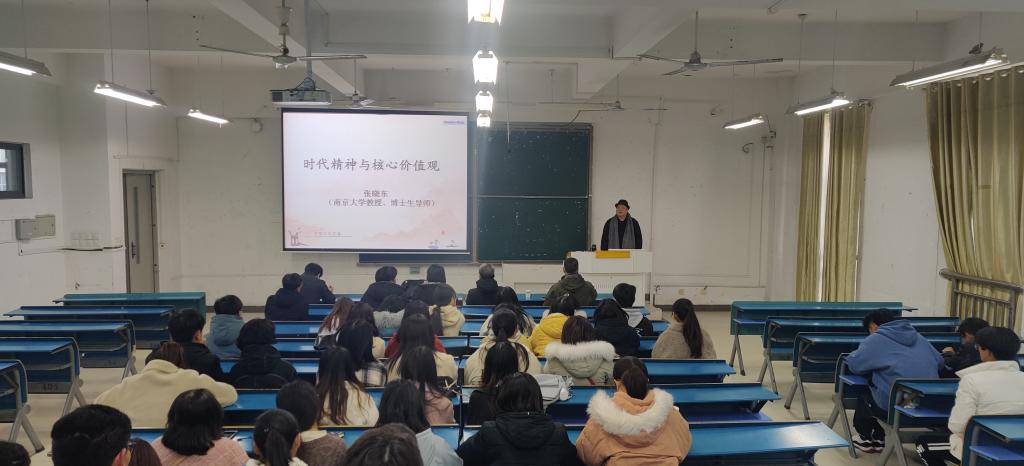 12月4日下午,应人文学院邀请,南京大学哲学系教授,博士生导师张晓东来我校,在新知楼B304教室,举办“时代精神与核心价值观”学术报告。报告会由人文学院副院长李晓东主持。
