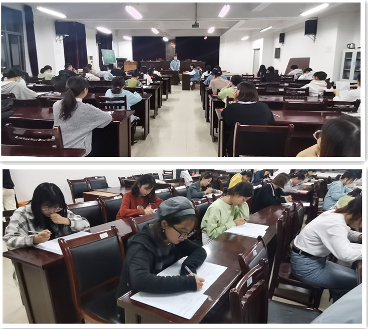 10月12日晚在模拟法庭举办拟发展对象进行入党知识测试,采取笔试方式,以选择题、填空题、简答题、论述题等多种题型,针对党的基本理论知识、时政热点等内容对党员发展对象进行综合考量。