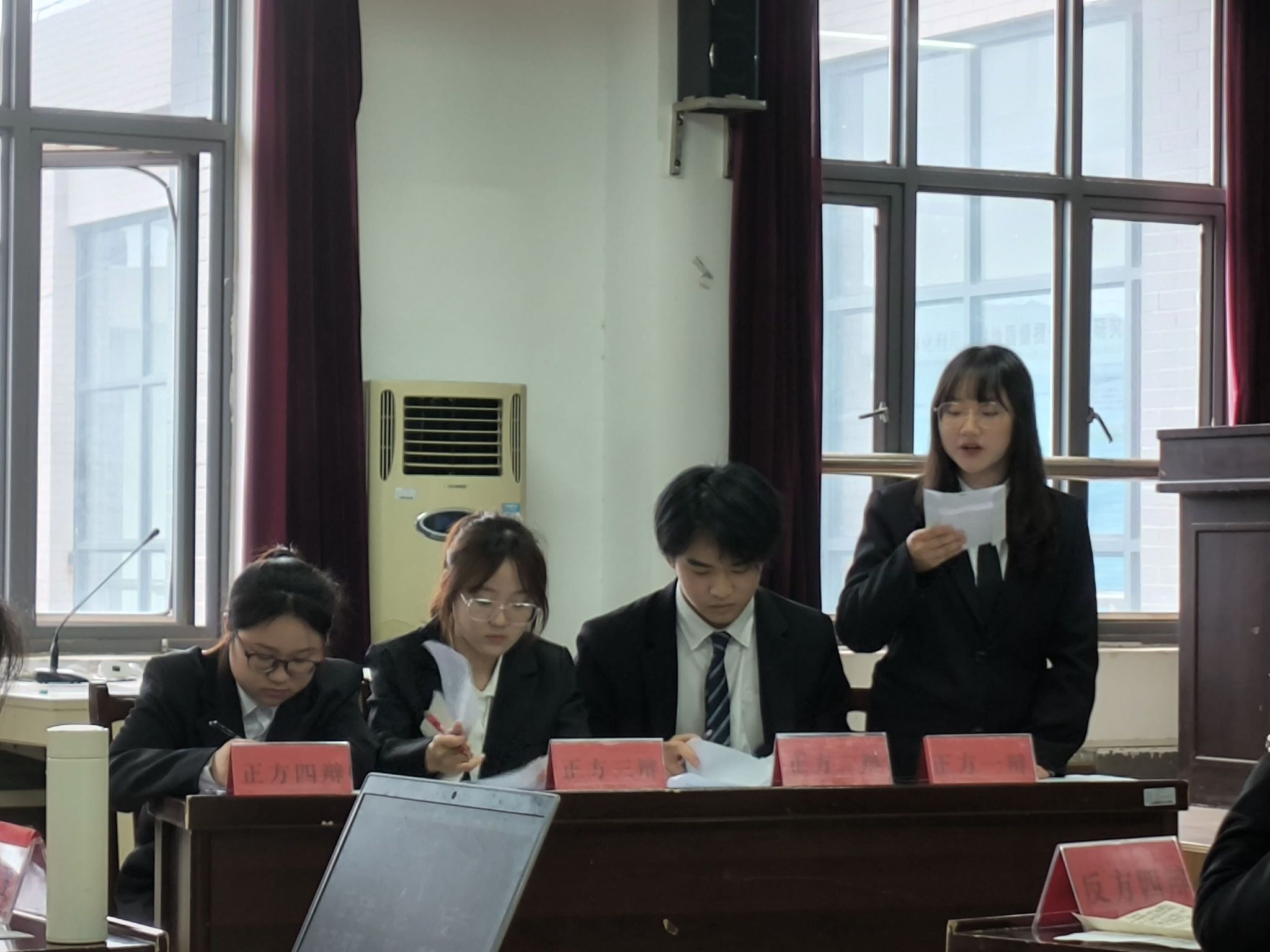 为推进校园法治文化建设,促进法学专业学生理论学习与实践锻炼相结合,提高专业素养和法律实务能力,4月14日下午,由人文学院法学社承办的开云在线2024年“未来律师辩论赛”决赛在模拟法庭举行。本次辩论赛由法学系主任张晓云担任教师评委,史梦洁、李旭、方巧慧担任学生评委;共有4组参赛队伍参与决赛角逐。