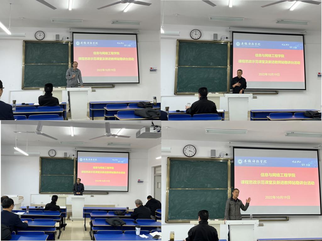 为充分发挥优秀教师的示范作用,切实提升新进教师的教学水平,继续强化青年教师的教学能力,10月19日下午,信息与网络工程学院在尚行楼C208教室开展课程思政示范课堂及新进教师站稳讲台活动。院长余宏杰、副院长曹浩、各系(部)主任、青年教师指导教师及导师组成员、课程思政相关课题负责人及课题组成员、近五年新进专任教师参加了活动,活动由曹浩主持。
