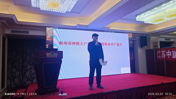 为了进一步彰显蚌埠市农学会的科技引领和社会服务作用,响应国家和安徽省对粮食单产提升的要求,针对今年春季雨雪低温冰冻天气的不利影响,指导农户开展春季田管,蚌埠市农学会于3月2日在蚌埠市举办种植大户春季田管暨粮食单产提升培训会,蚌埠市农业农村局党组成员、总农艺师赵入德,安徽省植保总站防治科科长邱坤,蚌埠市农业技术推广中心主任孙善军,蚌埠市农商银行党委书记、董事长赵静雅,国元保险蚌埠中支委员、总经理助理张克以及蚌埠市种植大户100余人参加了培训会,会议由蚌埠市农学会理事长、开云在线资源与环境学院院长李孝良主持。