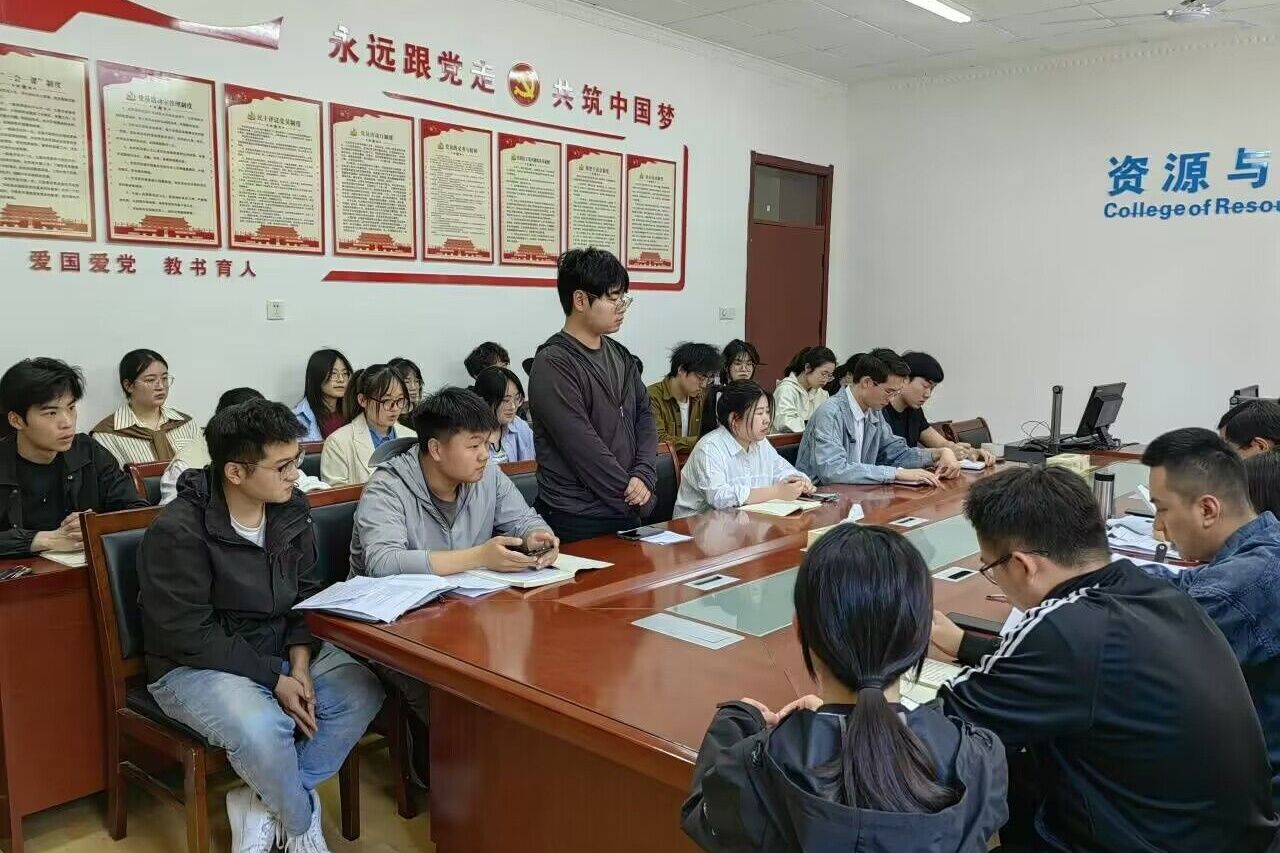 为加强对党员发展对象的培养与考察,切实提高党员的发展质量,进一步推进入党推优工作。资源与环境学院学生党支部于4月24日下午在学院会议室举行推优入党答辩会。资源与环境学院环境科学与工程专业学生党支部书记吴国良、农业资源与环境专业学生党支部书记杨小晗、地理信息科学专业学生党支部书记王丽萍,学院专职辅导员孙正浩、王华雪及两位正式学生党员作为评委出席本次会议,会议由吴国良主持。