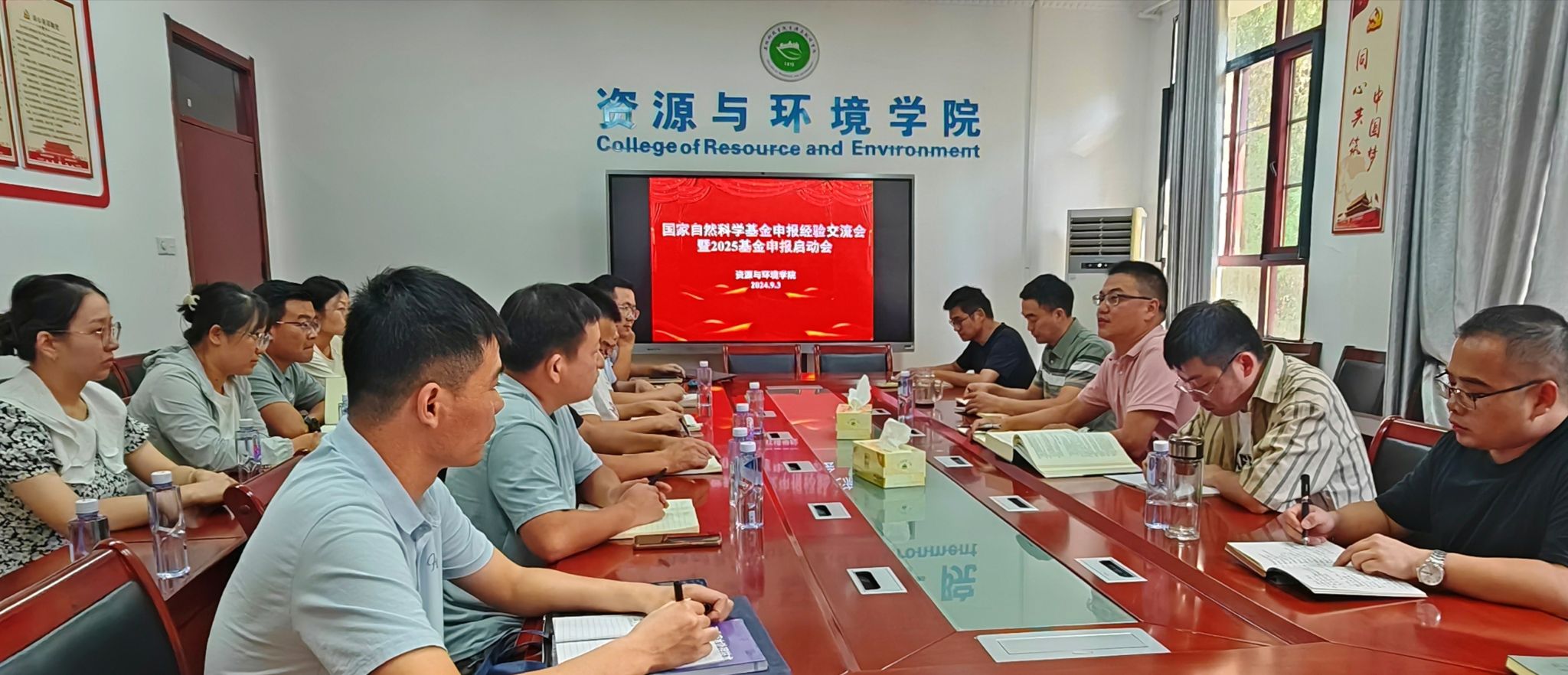 为做好2025年度国家自然科学基金项目申报工作,提高基金项目申报数量和质量,9月3日下午,资源与环境学院召开了2025年国家自然科学基金申报动员会暨经验交流会。会议由李飞跃副院长主持。学院拟申报国家基金项目的教师参加了会议。