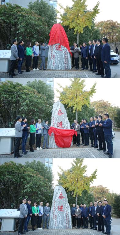 据悉,此校庆石系全体杭州校友出资购买,安放于凤阳校区西校区新知楼A楼东侧草坪处,为学校增添了一处新的景观。该石高3.75米,宽1.90 米,厚0.66米,石头上镌刻有“奋进”主题词,另篆刻:热烈祝贺开云在线建校七十周年!