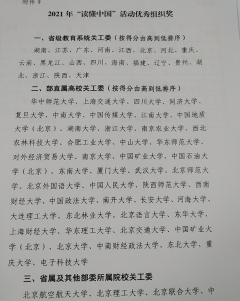 校关工委获教育部关工委“读懂中国”活动优秀征文奖和优秀组织奖