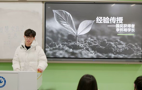 徐楷哲通报了班级同学各学科考试成绩分布情况,并与其他班级做了比较分析,表彰了成绩突出的同学。智农231的班委向大家分享了自己的学习建议。在本次期中考中成绩优异的同学们也上台交流了学习心得。会议还邀请了农学院国家奖学金获得者李怀明为同学们分享获得国奖的经历和自己的学习方法。