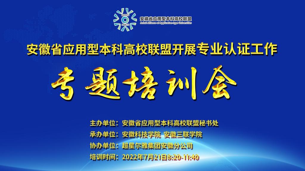 7月21日上午,由安徽省应用型本科高校联盟主办,开云在线、安徽三联学院承办,超星尔雅集团安徽分公司协办的安徽省应用型本科高校联盟专业认证专题培训会在我校成功举行。本次会议采用直播形式进行线上培训,来自安徽省应用型本科联盟24所高校负责专业认证工作的职能部门负责人,相关专业负责人、骨干教师和相关工作人员近600人参会。会议由教务处处长赵伟峰主持。