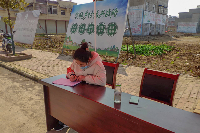 “您好!我是大学生志愿者,请测量体温并出示下有效证件,谢谢配合!”家住桐城市青草镇复兴村的国际经济与贸易中美171班朱佳佳作为村里疫情防控工作志愿者,主要负责了解过往车辆并进行登记,对往来人员进行逐一测量体温,提醒出入村民佩戴口罩。工作虽然繁复,但是朱佳佳却甘之如饴,希望尽自己微薄的力量守护最美乡村。