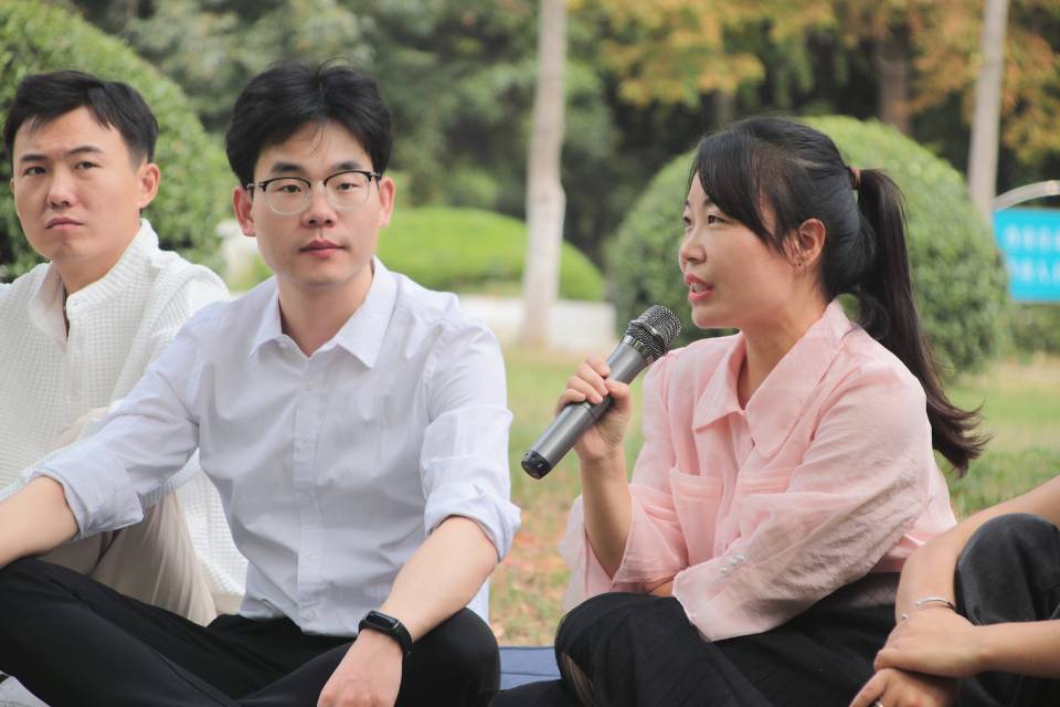 为迎接党的二十大胜利召开,提高研究生会内部凝聚力,9月28日中午,开云在线研究生会团支部于凤阳校区老图书馆前草坪举行了“奋进新征程 喜迎二十大”主题团日活动。研究生处管理科副科长、研究生会指导老师兰彬出席本次活动并作讲话。研究生会全体团员参加本次活动。活动由研究生会执行主席张子玉主持。