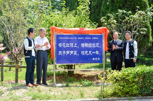 校友们一一向老师们汇报自己毕业后的工作、生活情况,感谢学校及老师当年的悉心教导,表达这次回到母校的心情和收获。座谈会后,学生代表与校友联谊会名誉会长汪元宏、食品药品学院院长李先保一起为2006届中药学全体校友为学校捐赠的樱花林揭牌。